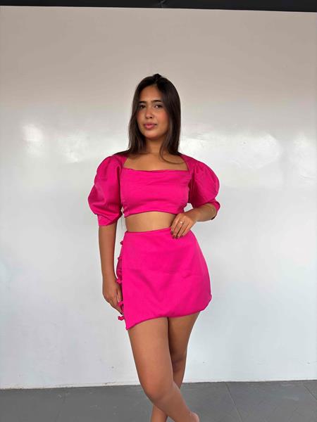 Moda paty sempre em alta, O conjunto Micheli simplesmente é a opção perfeita para quem ama um toque de delicadeza e conforto. O conjunto composto por um cropped que possui amarração nas costas, manga levemente bufantes, decote nas costas é o charme desse cropped! Short saia com detalhe minimalista de de nó, short na parte de baixo, zíper de qualidade atrás, zero transparência e 100% versátil!